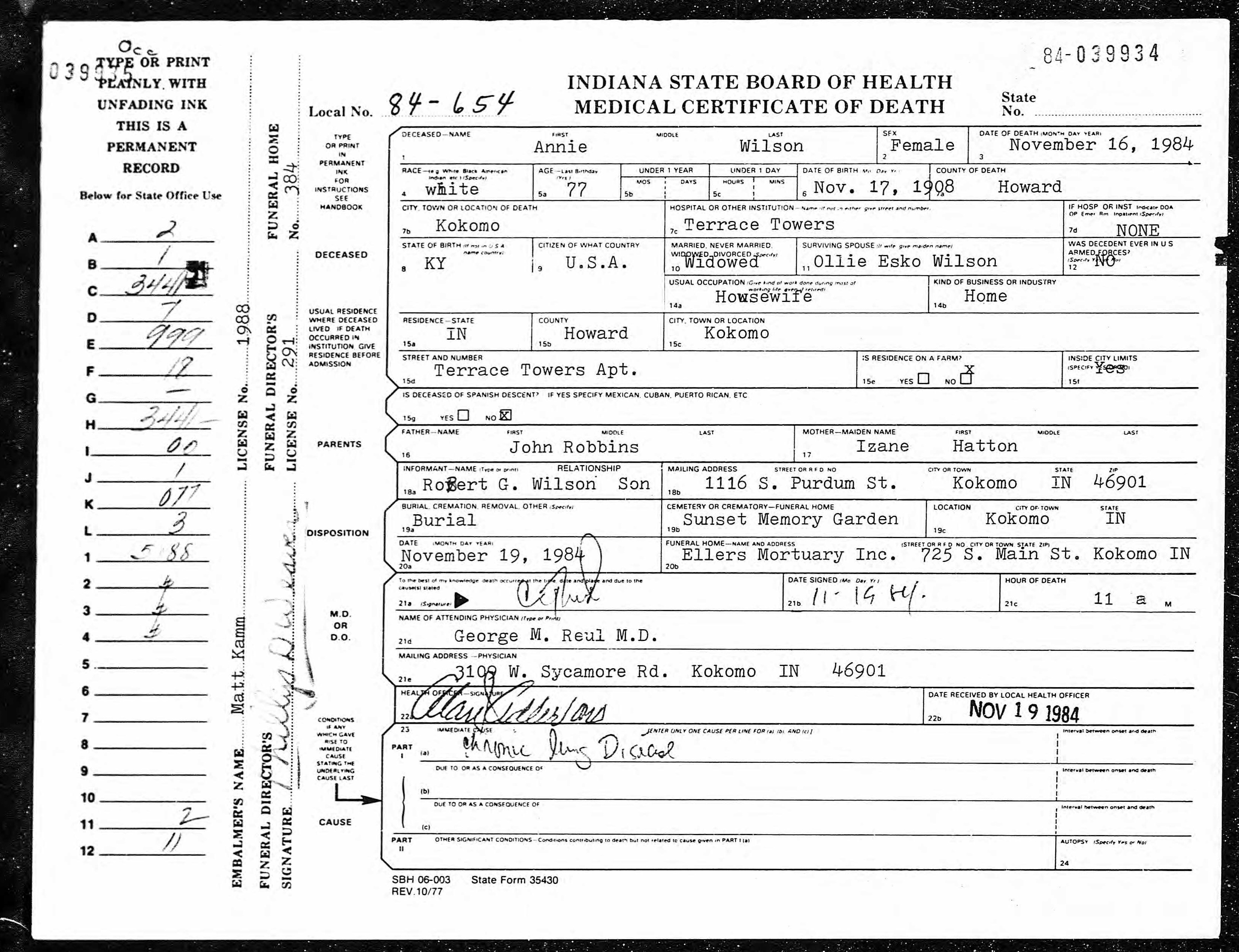 | Izane Ellen Robbins | March 17, 1954 | Menifee County, Kentucky |