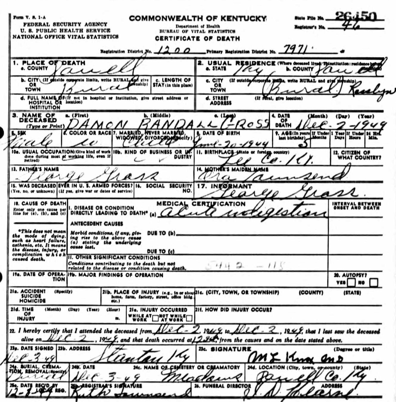 | Gross | Damon Randall | June 20, 1944 | December 2, 1949 | George Gross & Ora Townsend | Lee County, Kentucky | Powell County, Kentucky |