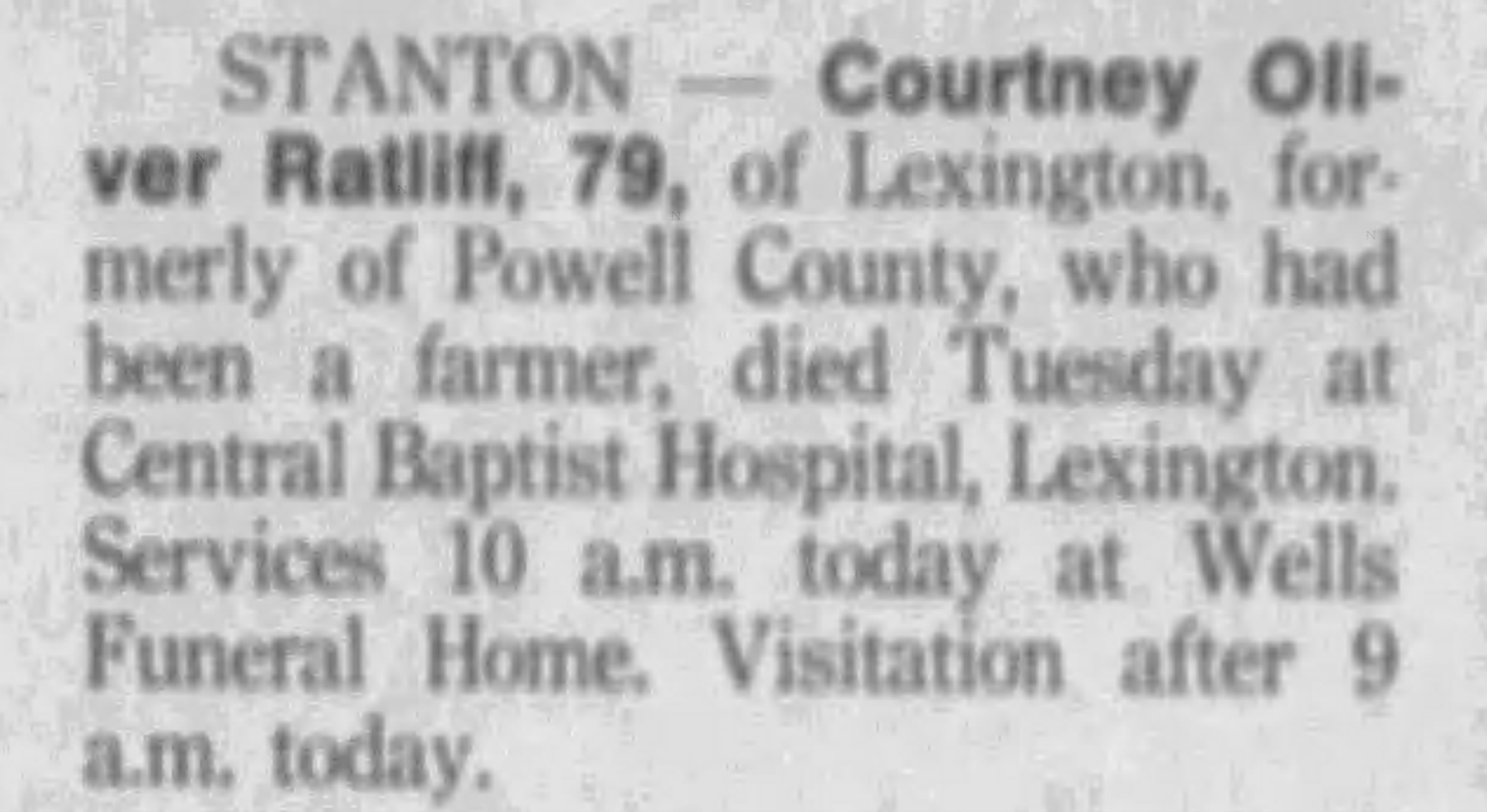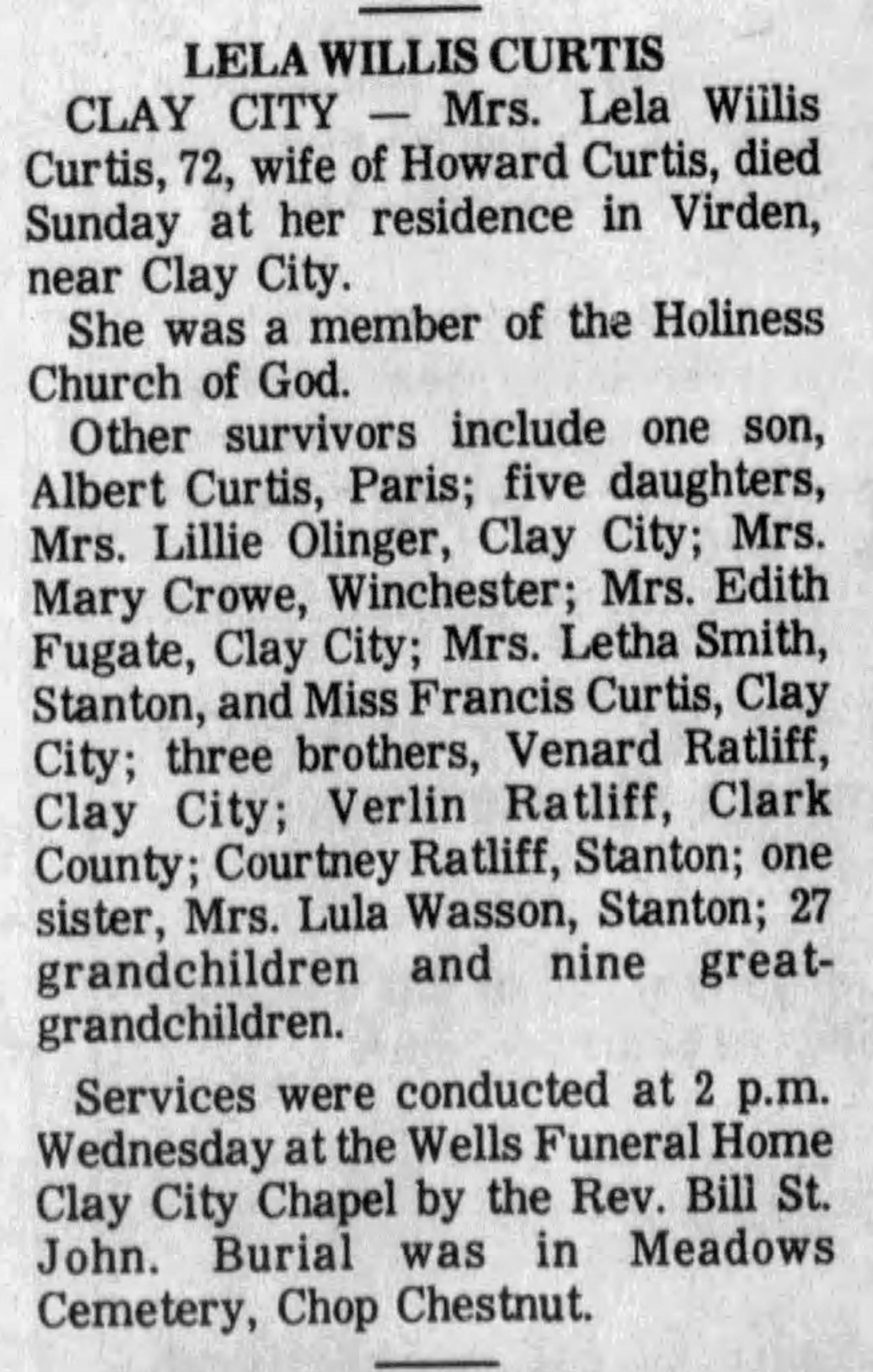 | Curtis | Lela | Willis | October 8, 1978 | Powell County, Kentucky | The Winchester Sun | October 11, 1978 |