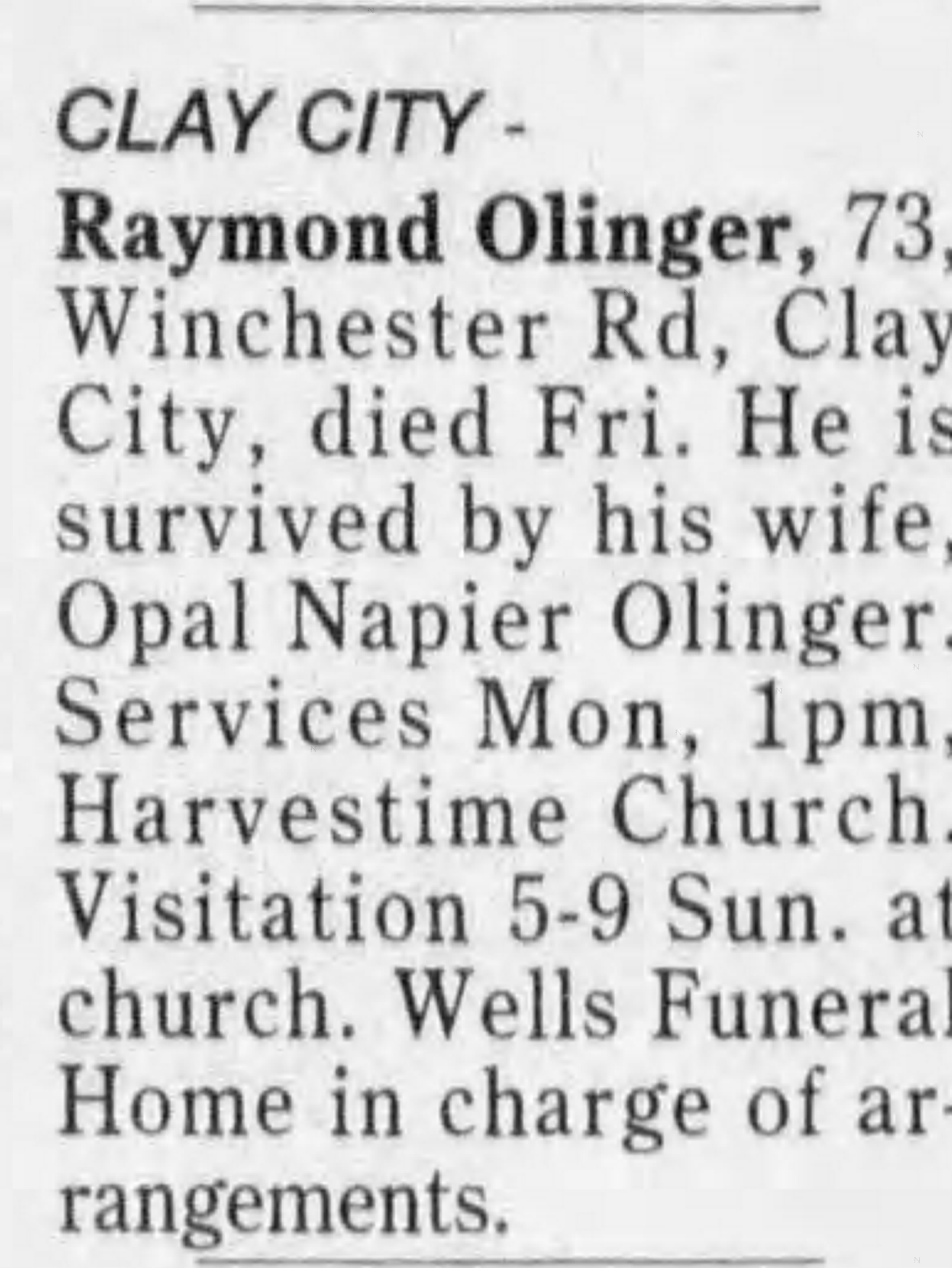 | Olinger | Raymond | March 11, 1933 | January 19, 2007 | Lexington Herald Leader | January 20, 2007 |