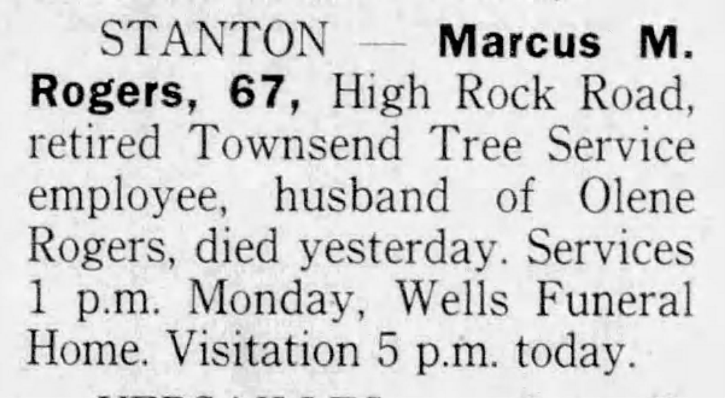 | Rogers | Marcus M | December 21, 1931 | April 17, 1999 | Bettie Meadows | Powell County, Kentucky | Powell County, Kentucky | Lexington Herald Leader | April 18, 1999 |